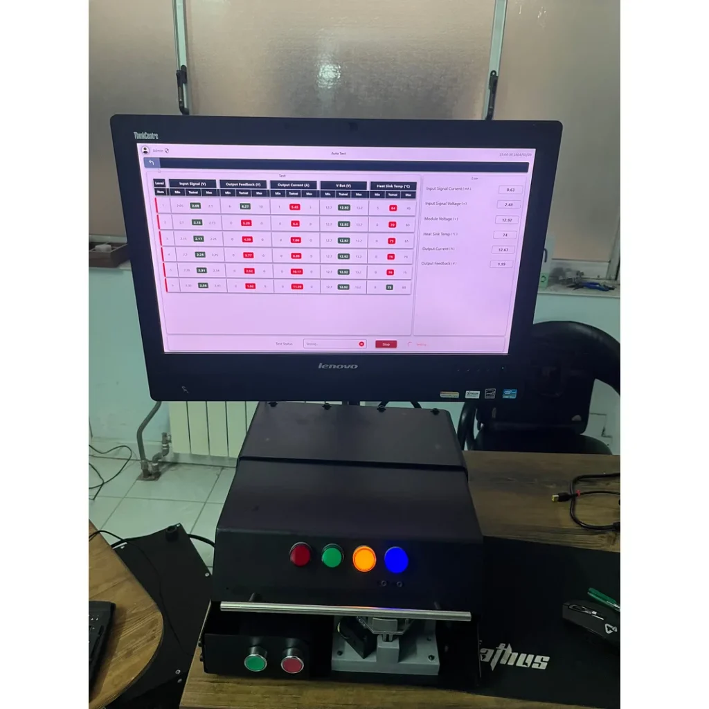 تستر ماژول فن درایور، دستگاهی کاربردی و دقیق است که برای بررسی جامع و ارزیابی عملکرد صحیح ماژولهای کنترل سرعت فن (فن درایور) طراحی شده است. این دستگاه، با فراهم آوردن امکان قرار دادن ماژول فن درایور و آغاز فرآیند تست (به دو صورت دستی و اتوماتیک)، یک محیط کنترلی کامل برای بررسی عملکرد این ماژولها ارائه میدهد.