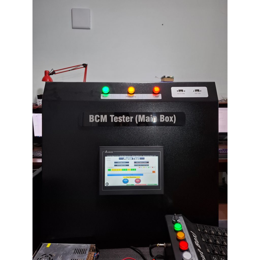 BCM یا واحد کنترل بدنه خودرو، یک یونیت الکترونیکی مرکزی در خودرو است که از طریق شبکه‌های ارتباطی داخلی CAN و LIN با ECU ارتباط می‌گیرد و عملکردهای غیرموتوری از جمله روشن خاموش کردن چراغ‌های خودرو، شیشه بالابرها و… را از طریق دریافت اطلاعات از سنسورها، کنترل و مدیریت می‌کند. با توجه به اهمیت صحت و دقت عملکرد BCM، نیاز به تجهیزاتی جهت تست، ارزیابی آن کاملاً مشهود است. در تستر BCM به تعداد مورد نیاز هر BCM، لود قابل برنامه‌ریزی مقاومتی و یا موتوری بنام Load Card جهت شبیه سازی چراغ ها، شیشه بالابرها و… بکار گرفته می‌شود که توسط دستگاه مرکزی بنام Main Box کنترل می‌شود. یک جزء دیگر از این تستر، Tool Learning می‌باشد که با اتصال هرنوع بار واقعی به آن قابلیت دریافت اطالاعات مربوط به ولتاژ و جریان بار را دارد و باتوجه به آن، هرکدام از Load Card ها را جهت شبیه‌سازی همان بار واقعی، برنامه‌ریزی می‌کند. تمامی این اجزا از طریق پروتکل CAN باهم در ارتباط هستند. رابط کاربری تحت عنوان نرم افزار ویندوز طراحی شده که تمام این جزئیات و مشخصات و نمودار جریان و ولتاژ آن قابل مشاهده و قابل تغییر می‌باشد.